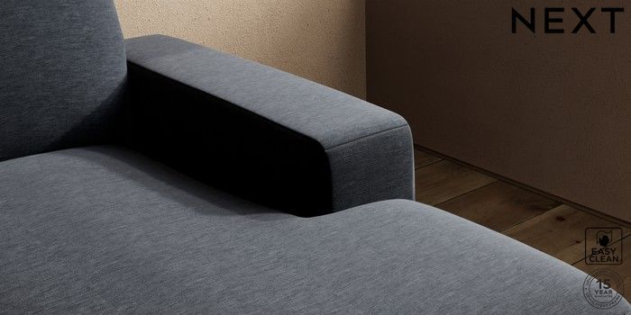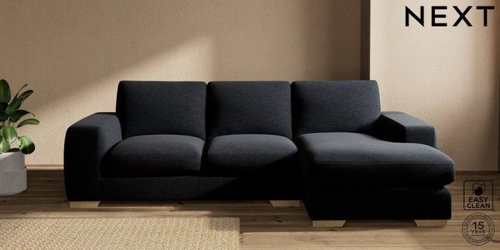 7.2.5 Buy Houghton Deep Sit Medium Sofa Chaise - Right Hand Fine Chenille Easy Clean Black Large Square Angle - Light from the Next UK online shop Click here to use our accessible website