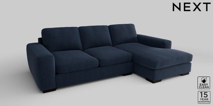6.12.1 Buy Houghton Deep Sit Medium Sofa Chaise - Right Hand Fine Chenille Easy Clean Dark Navy Blue Large Square Angle - Dark from the Next UK online shop Click here to use our accessible website