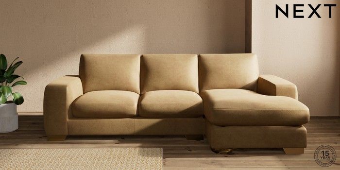 7.0.3 Buy Houghton Deep Sit Medium Sofa Chaise - Right Hand Luxe Chenille Honey Yellow Large Square Angle - Brushed Brass from the Next UK online shop Click here to use our accessible website