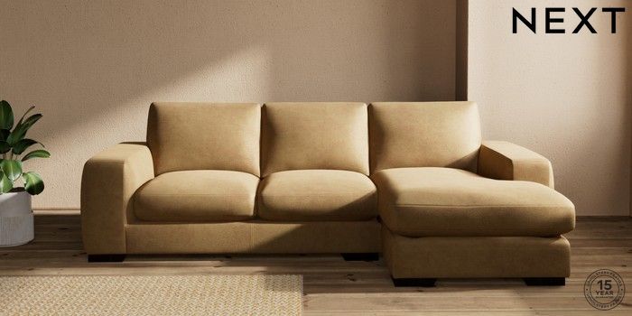 7.0.3 Buy Houghton Deep Sit Medium Sofa Chaise - Right Hand Luxe Chenille Honey Yellow Large Square Angle - Dark from the Next UK online shop Click here to use our accessible website