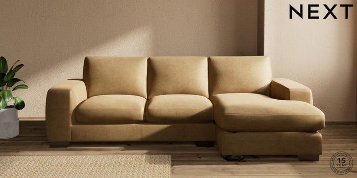 7.0.3 Buy Houghton Deep Sit Medium Sofa Chaise - Right Hand Luxe Chenille Honey Yellow Large Square Angle - Gunmetal from the Next UK online shop Click here to use our accessible website