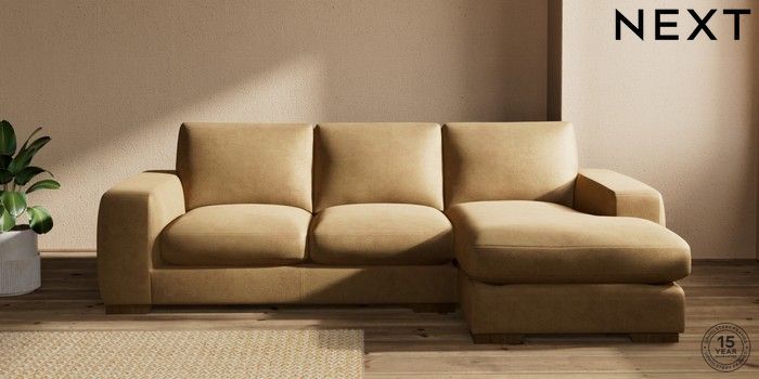 7.0.3 Buy Houghton Deep Sit Medium Sofa Chaise - Right Hand Luxe Chenille Honey Yellow Large Square Angle - Mid from the Next UK online shop Click here to use our accessible website