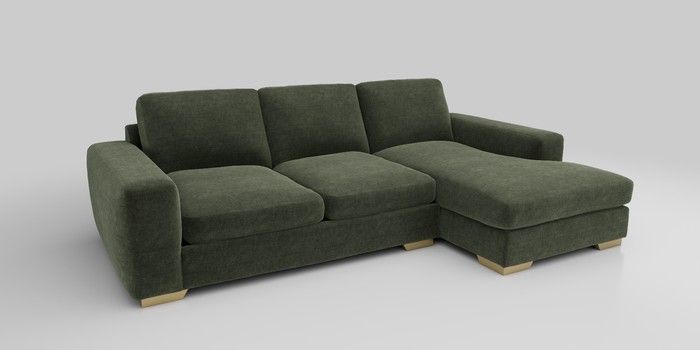 6.12.1 Buy Houghton Deep Sit Medium Sofa Chaise - Right Hand Luxe Chenille Mid Green Large Square Angle - Brushed Brass from the Next UK online shop Click here to use our accessible website