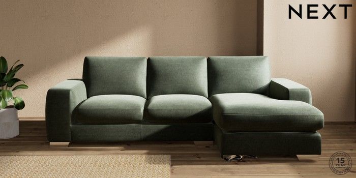 7.0.3 Buy Houghton Deep Sit Medium Sofa Chaise - Right Hand Luxe Chenille Mid Green Large Square Angle - Chrome Metal from the Next UK online shop Click here to use our accessible website