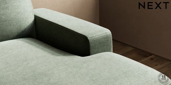 7.0.3 Buy Houghton Deep Sit Medium Sofa Chaise - Right Hand Luxe Chenille Mid Green Large Square Angle - Gunmetal from the Next UK online shop Click here to use our accessible website