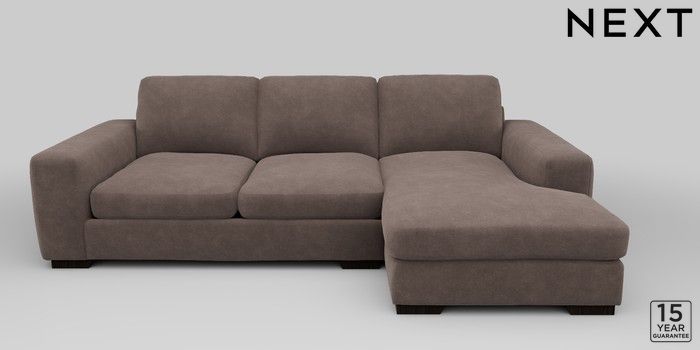 6.12.1 Buy Houghton Deep Sit Medium Sofa Chaise - Right Hand Luxe Chenille Mink Brown Large Square Angle - Dark from the Next UK online shop Click here to use our accessible website