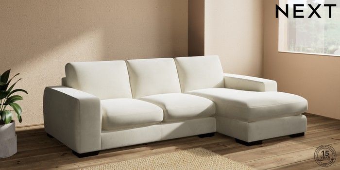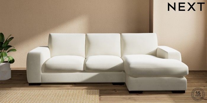 7.0.3 Buy Houghton Deep Sit Medium Sofa Chaise - Right Hand Luxe Chenille Oyster Large Square Angle - Dark from the Next UK online shop Click here to use our accessible website