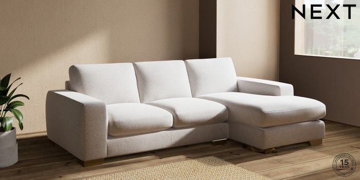 7.2.6 Buy Houghton Deep Sit Medium Sofa Chaise - Right Hand Multi Weave Oyster Large Square Angle - Brushed Brass from the Next UK online shop Click here to use our accessible website