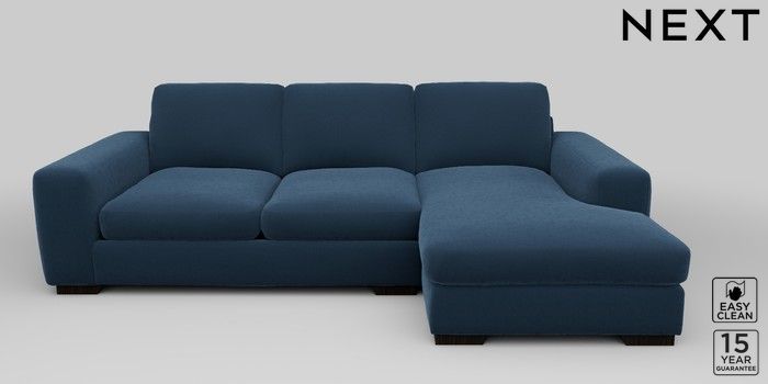 6.12.1 Buy Houghton Deep Sit Medium Sofa Chaise - Right Hand Plush Velvet Easy Clean Airforce Blue Large Square Angle - Dark from the Next UK online shop Click here to use our accessible website