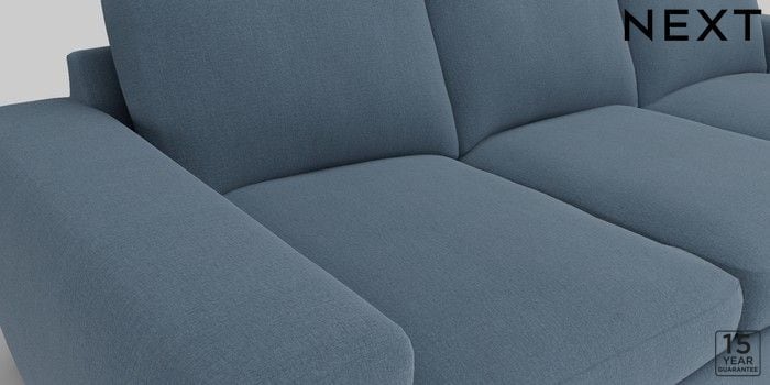 6.12.13 Buy Houghton Deep Sit Medium Sofa Chaise - Right Hand Relaxed Linen Look Mid Blue Large Square Angle - Mid from the Next UK online shop Click here to use our accessible website