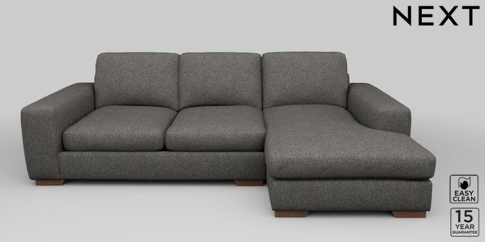6.12.1 Buy Houghton Deep Sit Medium Sofa Chaise - Right Hand Tweedy Blend Easy Clean Dark Grey Large Square Angle - Mid from the Next UK online shop Click here to use our accessible website