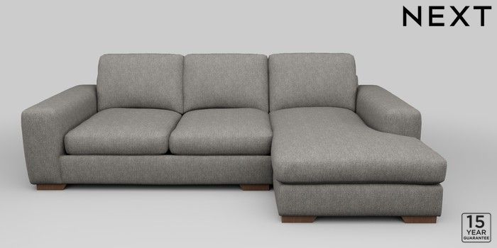 6.12.1 Buy Houghton Deep Sit Medium Sofa Chaise - Right Hand Tweedy Chenille Mid Grey Large Square Angle - Mid from the Next UK online shop Click here to use our accessible website