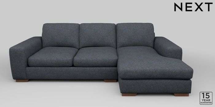 6.12.1 Buy Houghton Deep Sit Medium Sofa Chaise - Right Hand Tweedy Chenille Navy Blue Large Square Angle - Mid from the Next UK online shop Click here to use our accessible website
