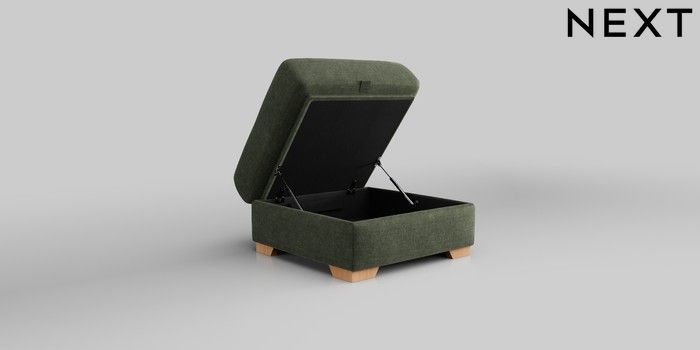 6.12.1 Buy Houghton Deep Sit Storage Footstool Luxe Chenille Mid Green Square Angle - Light from the Next UK online shop Click here to use our accessible website