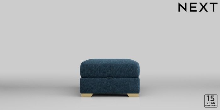 6.12.1 Buy Houghton Deep Sit Storage Footstool Cotswold Chenille Dark Blue Square Angle - Brushed Brass from the Next UK online shop Click here to use our accessible website