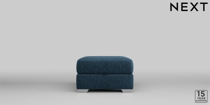 6.12.1 Buy Houghton Deep Sit Storage Footstool Cotswold Chenille Dark Blue Square Angle - Chrome Metal from the Next UK online shop Click here to use our accessible website