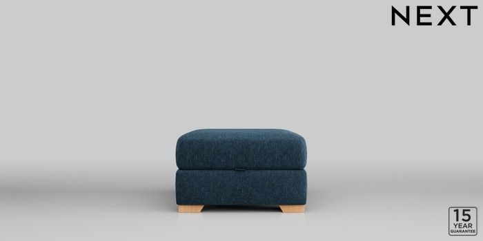 6.12.1 Buy Houghton Deep Sit Storage Footstool Cotswold Chenille Dark Blue Square Angle - Light from the Next UK online shop Click here to use our accessible website