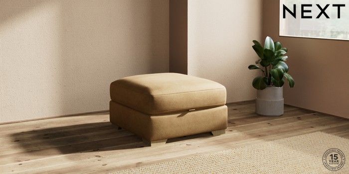 7.0.3 Buy Houghton Deep Sit Storage Footstool Luxe Chenille Honey Yellow Square Angle - Light from the Next UK online shop Click here to use our accessible website