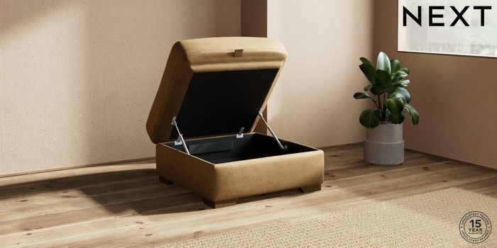 7.0.3 Buy Houghton Deep Sit Storage Footstool Luxe Chenille Honey Yellow Square Angle - Mid from the Next UK online shop Click here to use our accessible website