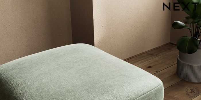 7.0.3 Buy Houghton Deep Sit Storage Footstool Luxe Chenille Mid Green Square Angle - Brushed Brass from the Next UK online shop Click here to use our accessible website