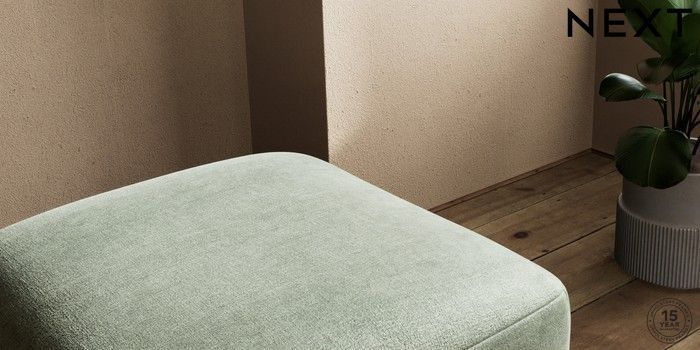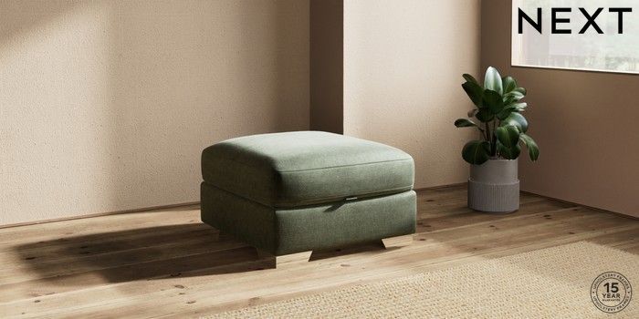 7.0.3 Buy Houghton Deep Sit Storage Footstool Luxe Chenille Mid Green Square Angle - Chrome Metal from the Next UK online shop Click here to use our accessible website
