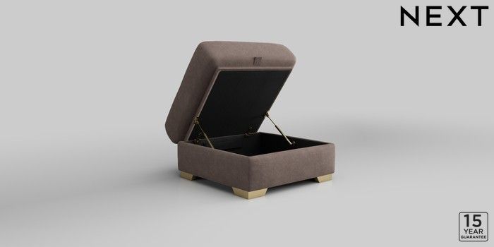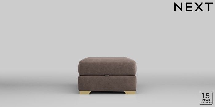 6.12.1 Buy Houghton Deep Sit Storage Footstool Luxe Chenille Mink Brown Square Angle - Brushed Brass from the Next UK online shop Click here to use our accessible website