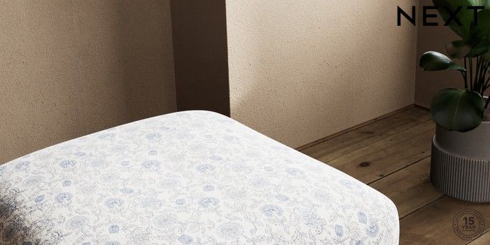 7.3.1 Buy Houghton Deep Sit Storage Footstool Relaxed Linen Look Print Woodblock Floral Blue Square Angle - Mid from the Next UK online shop Click here to use our accessible website