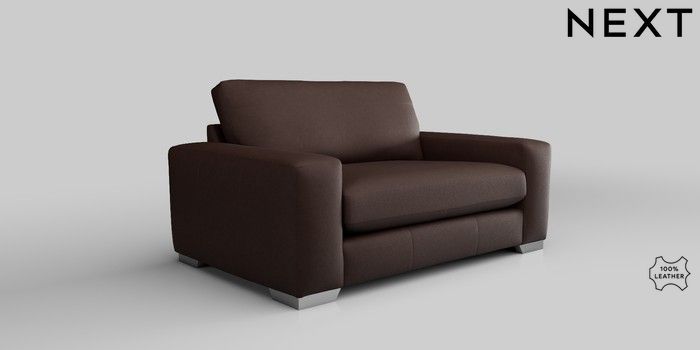 6.12.1 Buy Houghton Leather Deep Sit 2 Seater Small Sofa Rustic Leather Dark Brown Large Square Angle - Chrome Metal from the Next UK online shop Click here to use our accessible website