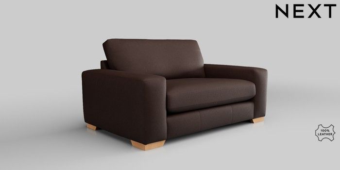 6.12.1 Buy Houghton Leather Deep Sit 2 Seater Small Sofa Rustic Leather Dark Brown Large Square Angle - Light from the Next UK online shop Click here to use our accessible website