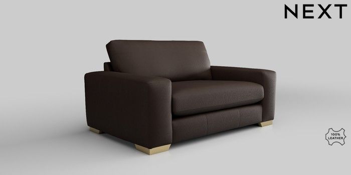 6.12.1 Buy Houghton Leather Deep Sit 2 Seater Small Sofa Turin Leather Dark Brown Large Square Angle - Brushed Brass from the Next UK online shop Click here to use our accessible website