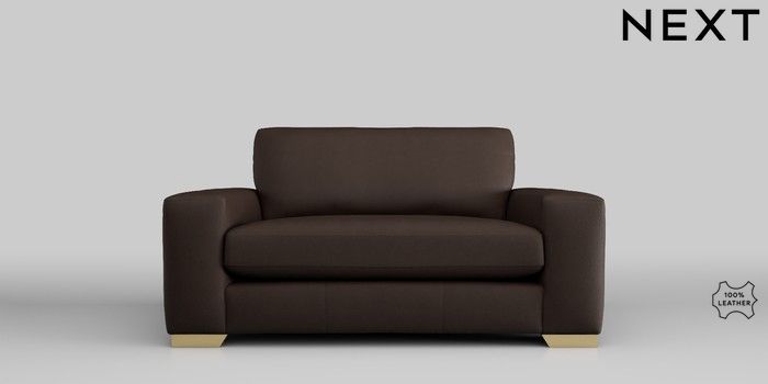 7.0.3 Buy Houghton Leather Deep Sit 2 Seater Small Sofa Turin Leather Dark Brown Large Square Angle - Brushed Brass from the Next UK online shop Click here to use our accessible website
