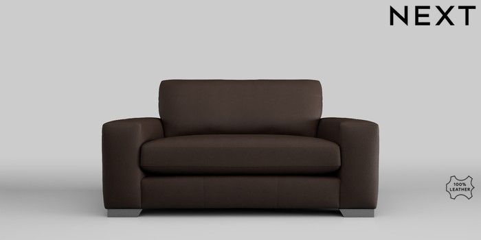 7.0.3 Buy Houghton Leather Deep Sit 2 Seater Small Sofa Turin Leather Dark Brown Large Square Angle - Gunmetal from the Next UK online shop Click here to use our accessible website