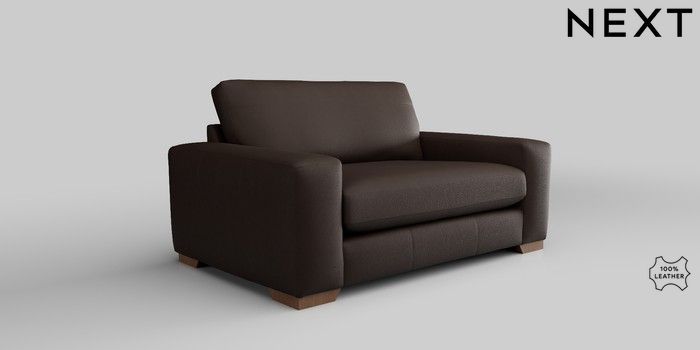 6.12.1 Buy Houghton Leather Deep Sit 2 Seater Small Sofa Turin Leather Dark Brown Large Square Angle - Mid from the Next UK online shop Click here to use our accessible website