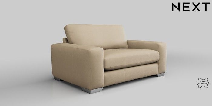 6.12.1 Buy Houghton Leather Deep Sit 2 Seater Small Sofa Turin Leather Light Natural Large Square Angle - Chrome Metal from the Next UK online shop Click here to use our accessible website