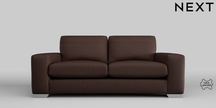 7.0.3 Buy Houghton Leather Deep Sit 3 Seater Small Sofa Rustic Leather Dark Brown Large Square Angle - Chrome Metal from the Next UK online shop Click here to use our accessible website