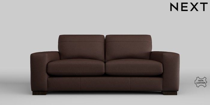 7.0.3 Buy Houghton Leather Deep Sit 3 Seater Small Sofa Rustic Leather Dark Brown Large Square Angle - Dark from the Next UK online shop Click here to use our accessible website