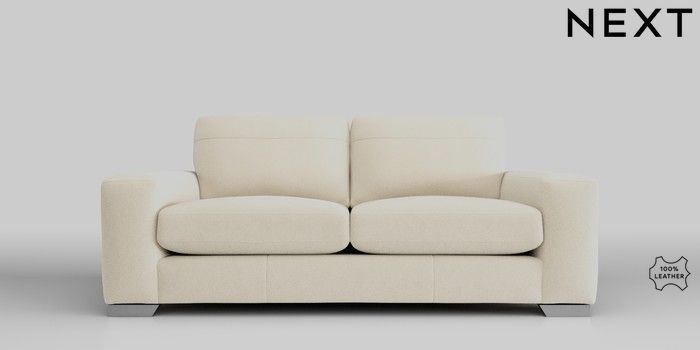 6.11.8 Buy Houghton Leather Deep Sit 3 Seater Small Sofa Turin Leather Cream Large Square Angle - Chrome Metal from the Next UK online shop Click here to use our accessible website