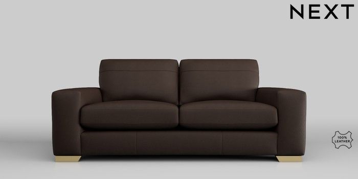 7.0.3 Buy Houghton Leather Deep Sit 3 Seater Small Sofa Turin Leather Dark Brown Large Square Angle - Brushed Brass from the Next UK online shop Click here to use our accessible website
