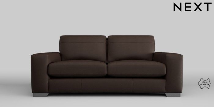 7.0.3 Buy Houghton Leather Deep Sit 3 Seater Small Sofa Turin Leather Dark Brown Large Square Angle - Gunmetal from the Next UK online shop Click here to use our accessible website