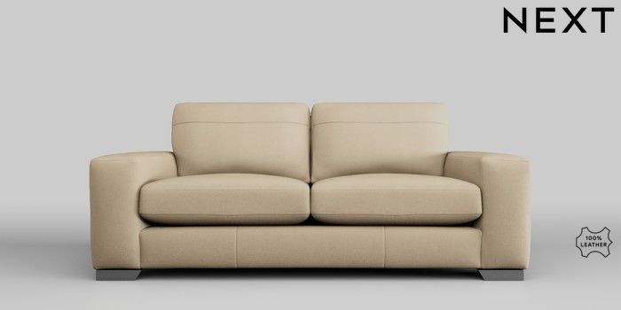 7.0.3 Buy Houghton Leather Deep Sit 3 Seater Small Sofa Turin Leather Light Natural Large Square Angle - Gunmetal from the Next UK online shop Click here to use our accessible website