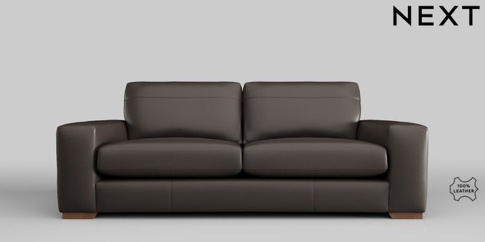 6.11.8 Buy Houghton Leather Deep Sit 3 Seater Sofa Columbia Dark Brown Large Square Angle - Mid from the Next UK online shop Click here to use our accessible website