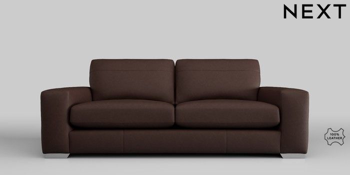 7.0.3 Buy Houghton Leather Deep Sit 3 Seater Sofa Rustic Leather Dark Brown Large Square Angle - Chrome Metal from the Next UK online shop Click here to use our accessible website
