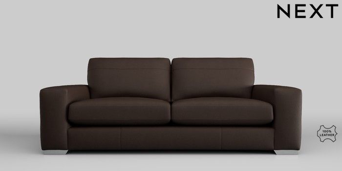 7.0.3 Buy Houghton Leather Deep Sit 3 Seater Sofa Turin Leather Dark Brown Large Square Angle - Chrome Metal from the Next UK online shop Click here to use our accessible website