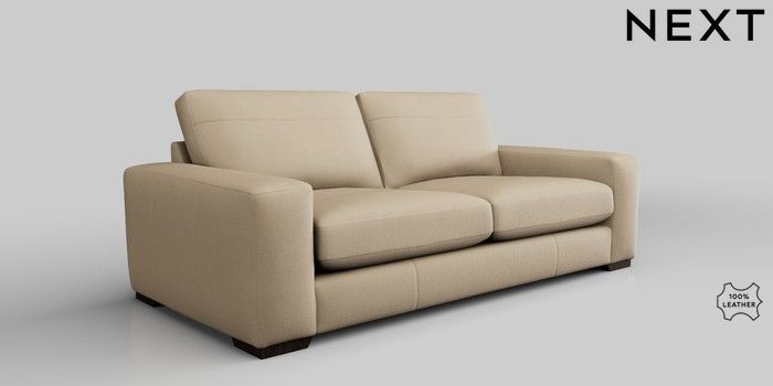 6.12.1 Buy Houghton Leather Deep Sit 3 Seater Sofa Turin Leather Light Natural Large Square Angle - Dark from the Next UK online shop Click here to use our accessible website