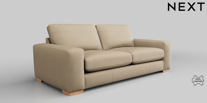 6.12.1 Buy Houghton Leather Deep Sit 3 Seater Sofa Turin Leather Light Natural Large Square Angle - Light from the Next UK online shop Click here to use our accessible website