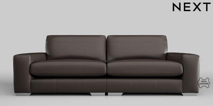 6.12.13 Buy Houghton Leather Deep Sit 4 Seater Sofa Columbia Dark Brown Large Square Angle - Chrome Metal from the Next UK online shop Click here to use our accessible website