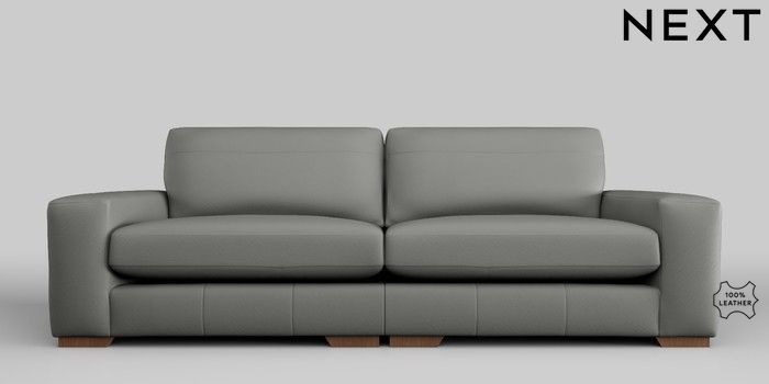 6.11.8 Buy Houghton Leather Deep Sit 4 Seater Sofa Columbia French Grey Large Square Angle - Mid from the Next UK online shop Click here to use our accessible website
