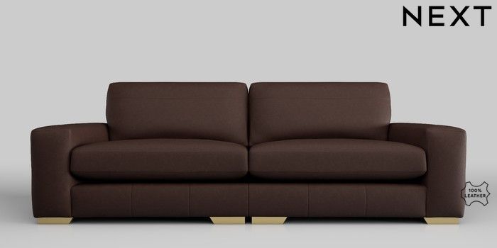 7.0.3 Buy Houghton Leather Deep Sit 4 Seater Sofa Rustic Leather Dark Brown Large Square Angle - Brushed Brass from the Next UK online shop Click here to use our accessible website