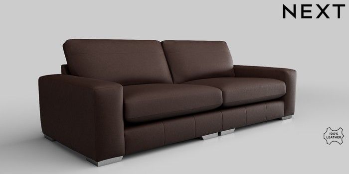 6.12.1 Buy Houghton Leather Deep Sit 4 Seater Sofa Rustic Leather Dark Brown Large Square Angle - Chrome Metal from the Next UK online shop Click here to use our accessible website