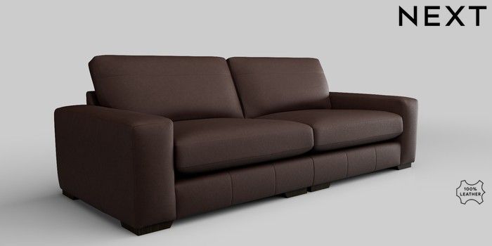 6.12.1 Buy Houghton Leather Deep Sit 4 Seater Sofa Rustic Leather Dark Brown Large Square Angle - Dark from the Next UK online shop Click here to use our accessible website